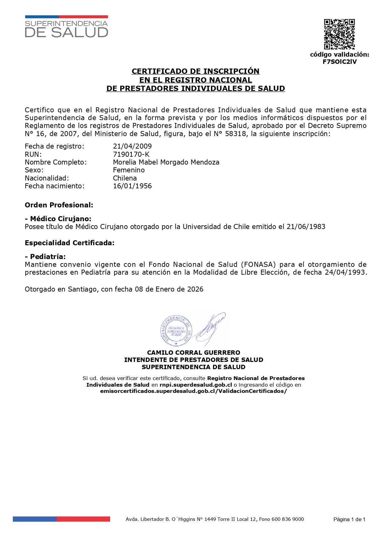 Medico Cirujano, Universidad de Chile 1983.